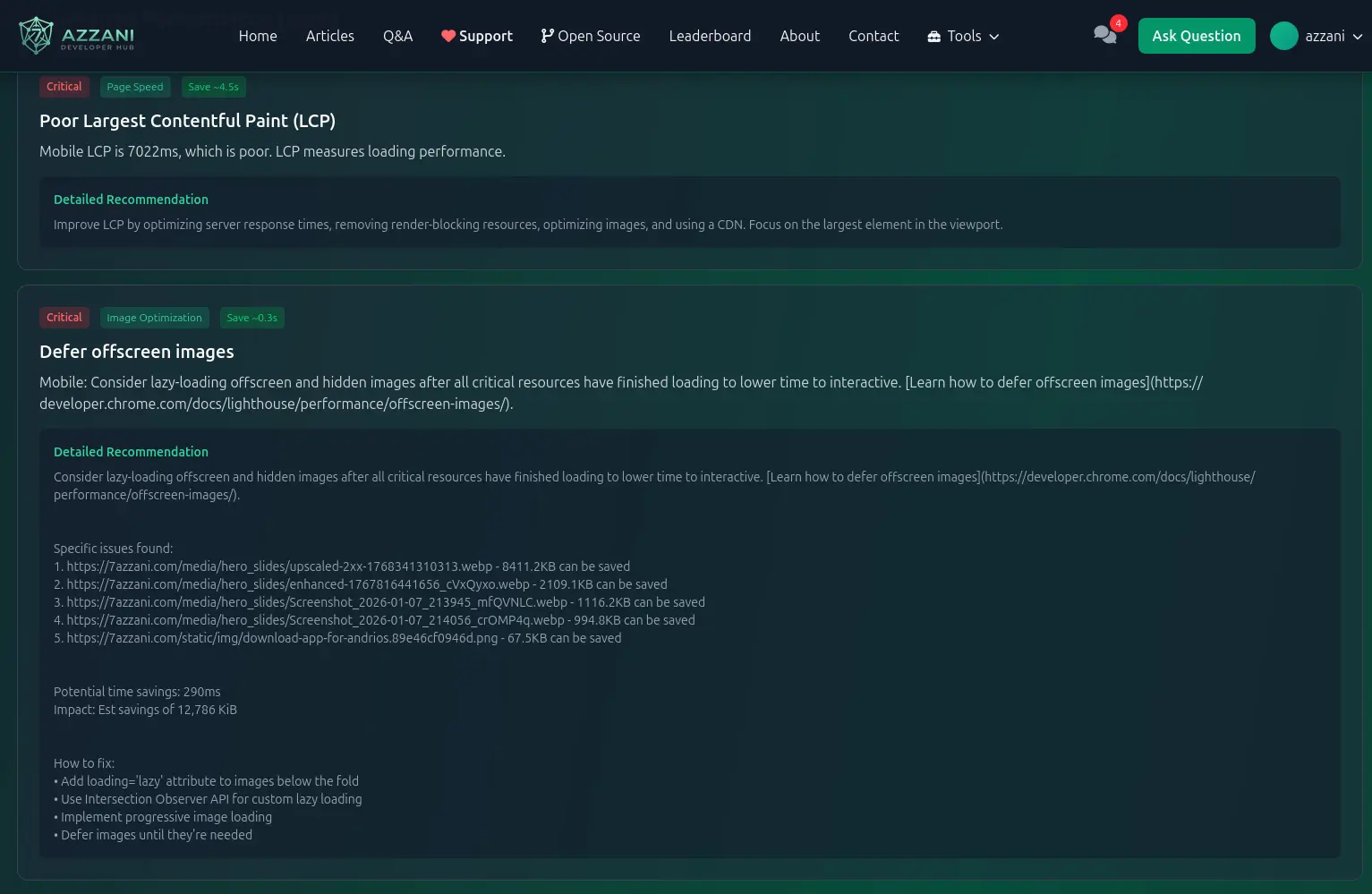 Many websites experience similar performance issues. The 7AZZANI Performance Tool helps identify the most common bottlenecks, including: