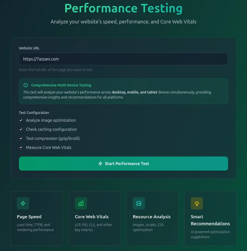 The 7AZZANI Performance Tool is designed to make performance analysis practical, actionable, and repeatable. It helps businesses understand how their websites behave in real-world conditions and what improvements will deliver the greatest impact.